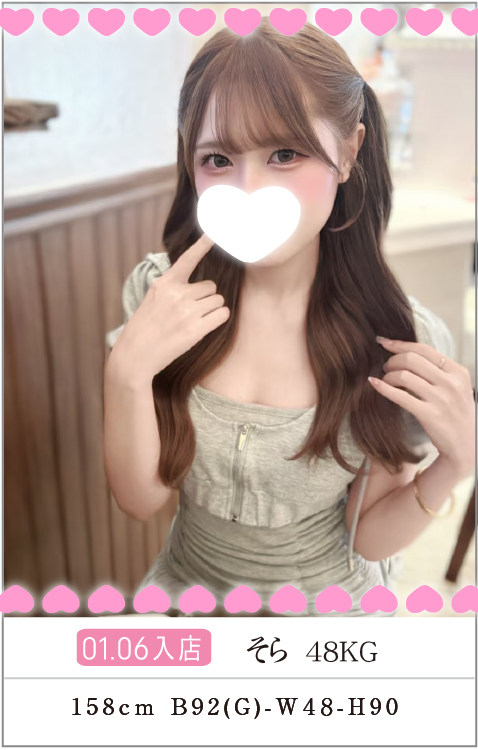 ♥01月06日新人入店NEW!!そらとまに(本人写真)入店♥ 綺麗な顔立ちからの彼女の微笑みは、一瞬見惚れてしまうほど・・・ 目鼻立が整った可愛い笑顔が魅力の美人セラピスト♪ 明るく朗らかな性格でお客様の心を自然と元気にさせてくれることはもちろん、 お客様を思いやる優しい気持ちのこもった施術で身体のお疲れを解してくれるセラピストです。 ![]()