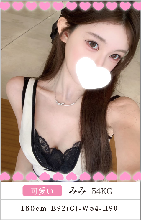| 綺麗な顔立ちからの彼女の微笑みは、一瞬見惚れてしまうほど・・・目鼻立が整った可愛い笑顔が魅力の美人セラピスト♪明るく朗らかな性格でお客様の心を自然と元気にさせてくれることはもちろん、お客様を思いやる優しい気持ちのこもった施術で身体のお疲れを解してくれるセラピストです。 | 笑顔がいっぱいで愛嬌がイイ!マッサージの技術は上級レベル!気配りよく丁寧な対応から高感度を持っています。!魅力的なバストとナイスなボディが彼女の魅力を倍増させます。是非一度指名してみてください! かなりオススメ!! |
